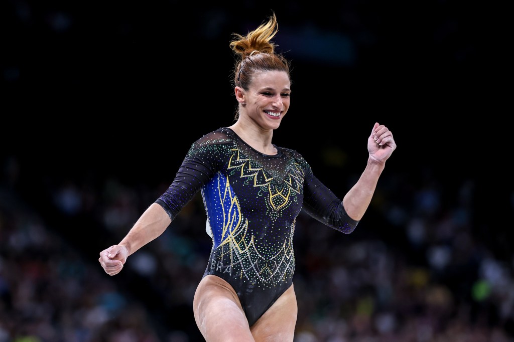 Foto: Alexandre Loureiro/COB.Foto: Alexandre Loureiro/COB. Na foto, a ginasta Jade Barbosa durante a fase qualificatória.2024.08.01 – Jogos Olímpicos Paris 2024 – Ginástica Artística feminino. Rebeca Andrade conquista a medalha de prata na final do individual geral. Na foto, a ginasta Flavia Saraiva finalista brasileira. Foto Luiza Moraes/COB