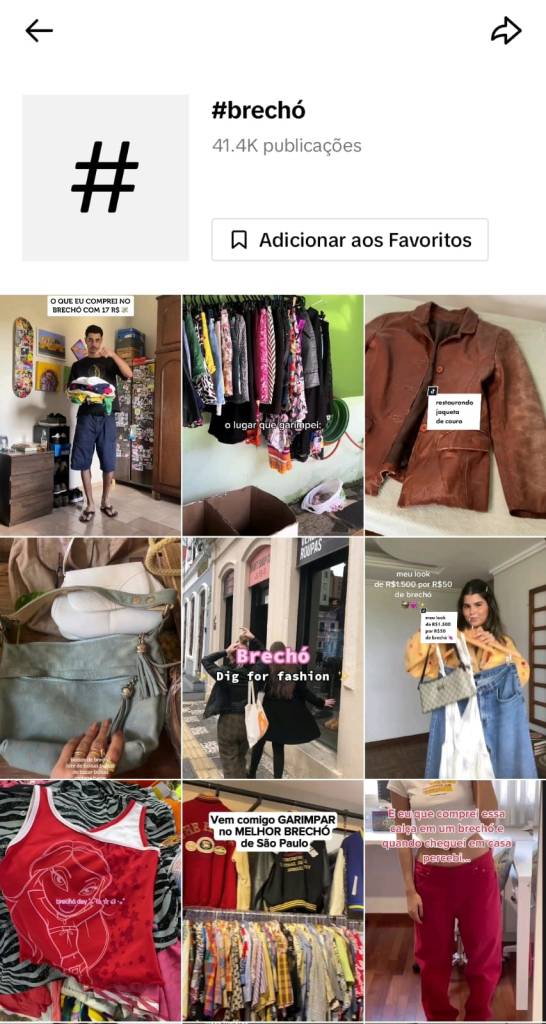 A pandemia de Covid-19 trouxe consigo uma onda de hypes que marcaram a moda. Entre eles, o hype dos brechós, junto com os termos “garimpo” e “curadoria”, que blogueiros popularizaram. A necessidade de ser autêntico agora inclui o uso de peças únicas – e quem não quer ser único? No TikTok, a hashtag “brechó” possui mais de 41 mil publicações, com conteúdos que vão desde indicações de brechós e dicas de como montar looks até como garimpar e estilizar suas peças de forma autêntica. Blogueiras aderiram ao movimento e algumas até produzem conteúdo exclusivamente focado em moda de brechó, promovendo tanto a autenticidade do look quanto a sustentabilidade.