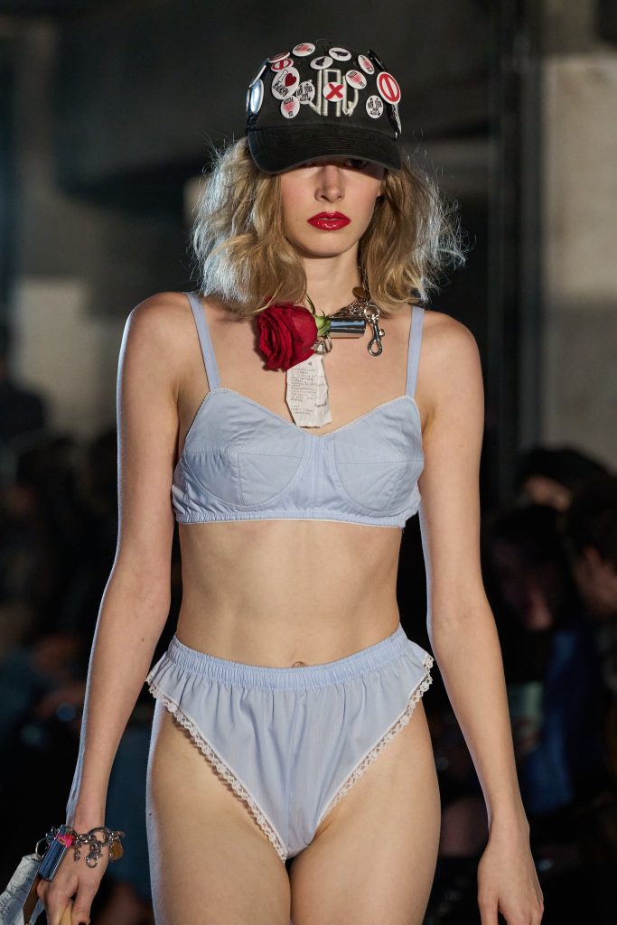 Outra característica que marca a beleza são olhos vendados pelos acessórios de cabeça variando entre bonés, óculos de sol enormes e uma espécie de chapéu plumoso que, para mim, foi o ponto mais interessante de entre todos os looks.