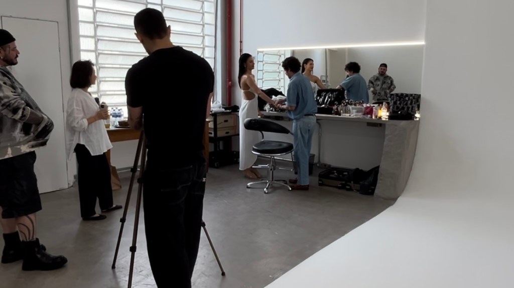Com looks ajustados e beleza pronta, começam os primeiros testes. Parte da equipe está a todo vapor nos bastidores capturando conteúdo exclusivo com vídeos, fotos de backstage e organizando as próximas peças, agilidade nas trocas de roupa é essencial.