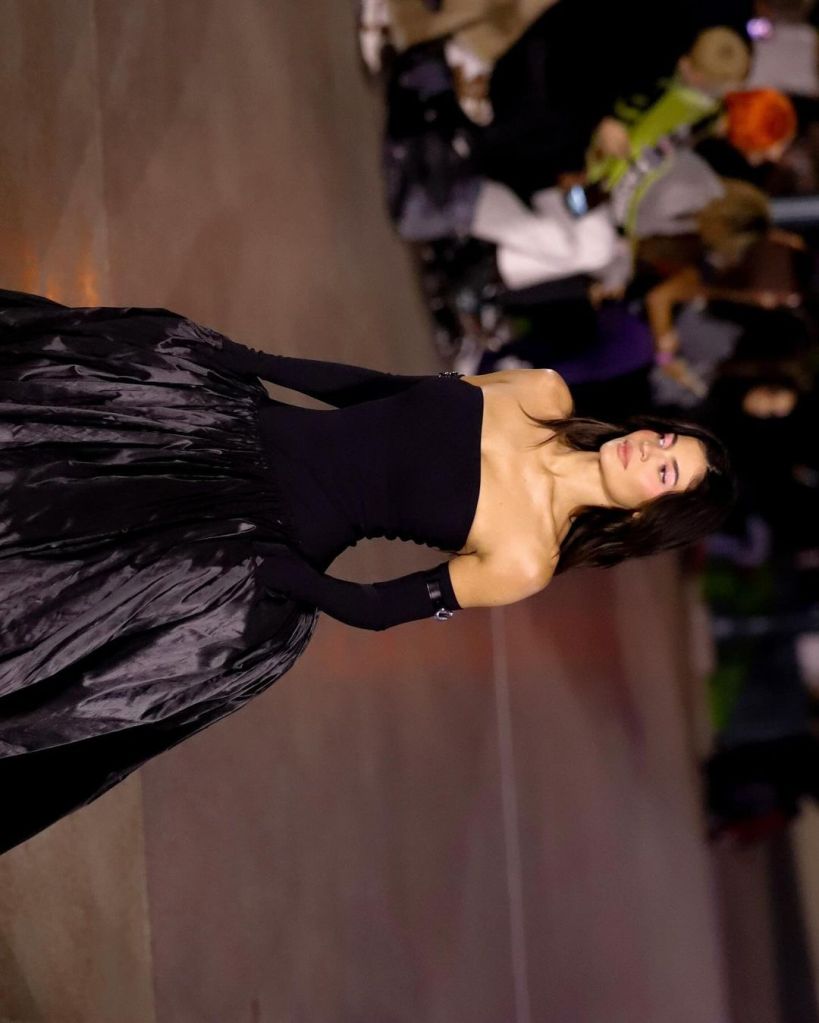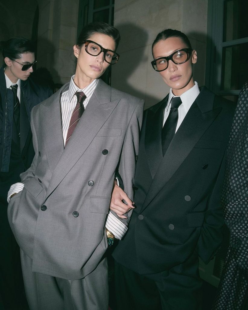A alfaiataria clássica da Maison, o blazer oversized e o visual andrógeno assinalaram muito bem o desfile da Saint Laurent, inspirado nos anos 80 da marca. No campo das modelos e celebridades, Bella Hadid retornou às passarelas após 2 anos sem desfilar, sua última aparição desfilando tinha sido em 2022.