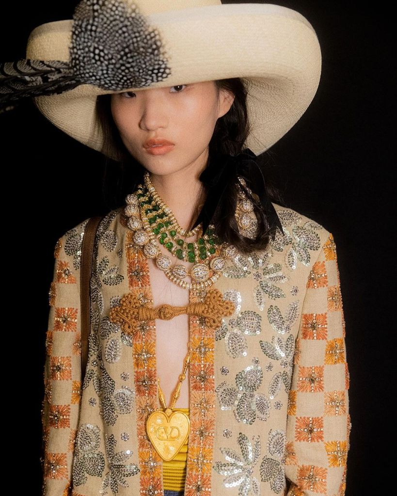 Alessandro buscou referências do próprio Valentino Garavani nos anos 60, quando ele vestia as mulheres da época. Essa menção ao criador da marca foi observada nas calças mais vastas e nas jaquetas estampadas.