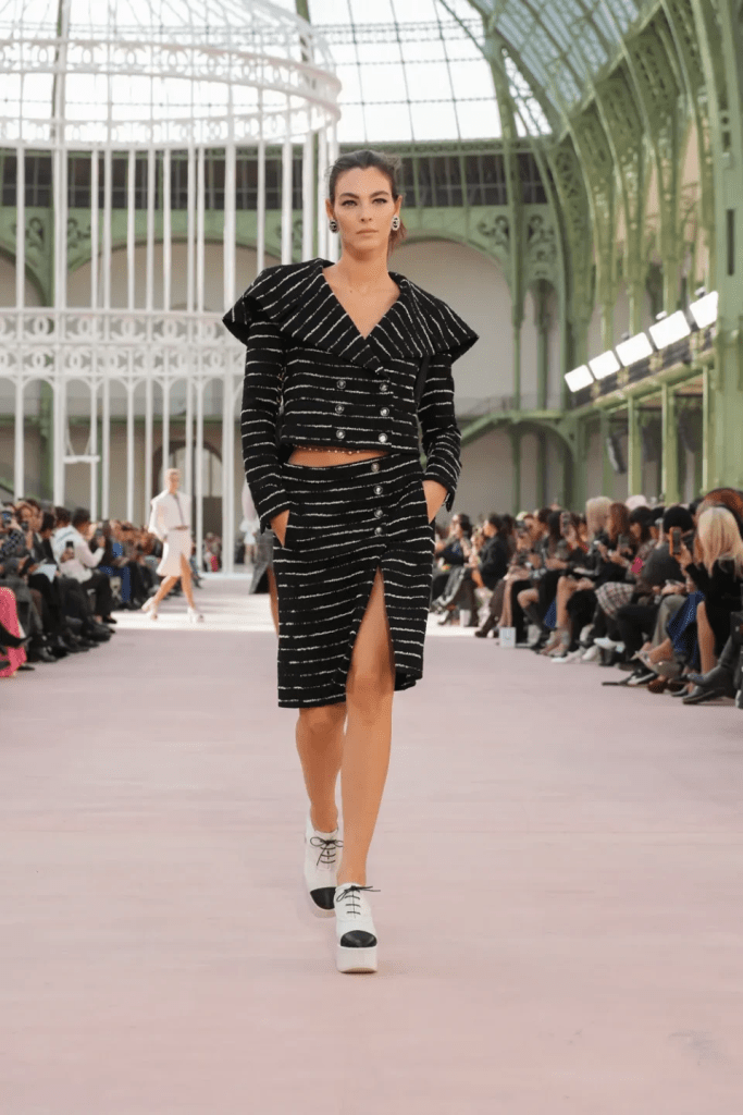 O último dia de desfiles da Paris Fashion Week foi aberto por uma Channel sem diretor criativo. A beleza explorada pela coleção converge com o resgate do estilo clássico da marca, principalmente com o delineado e os brincos usados pelas modelos.