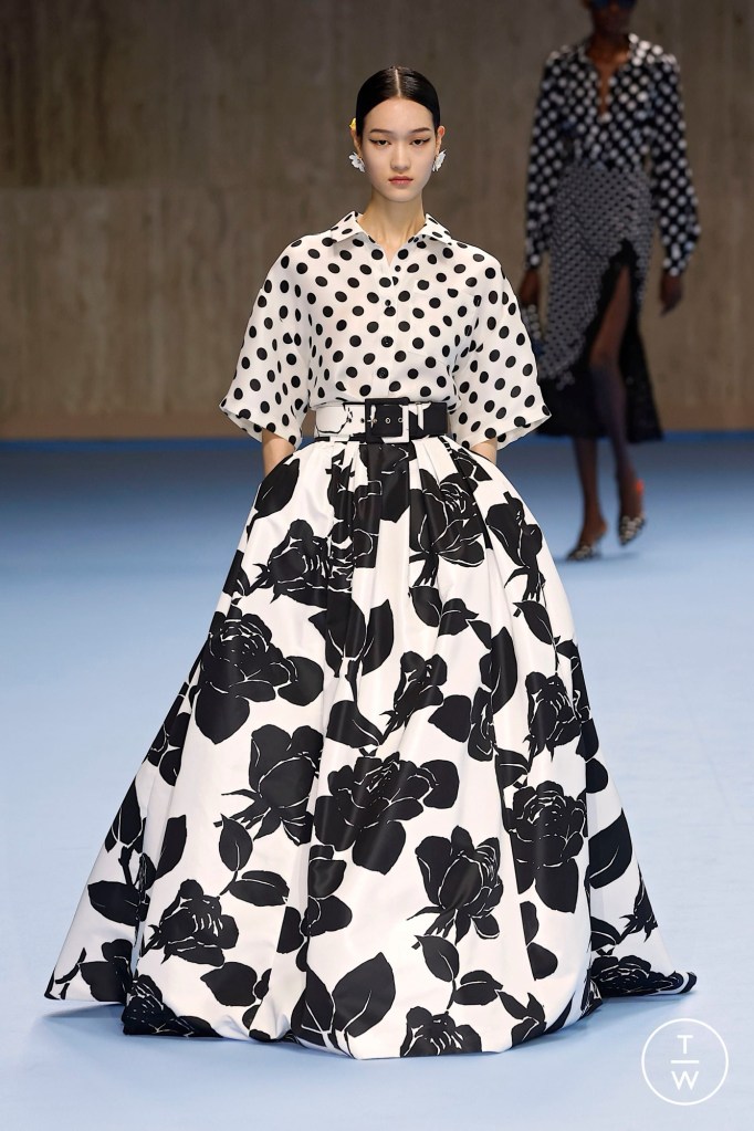 As estruturas volumosas também foram a moldura escolhida para Carolina Herrera. As mangas estruturadas e exageradas, camisas oversized, peças ajustadas e elementos assimétricos. A marca serviu e brincou com diferentes silhuetas nessa coleçao.