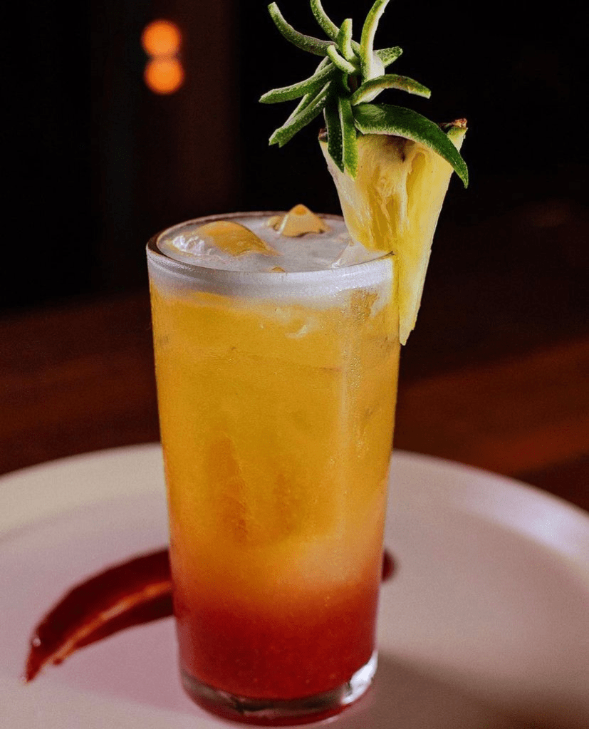 Vodka, geleia de morango, laranja e espuma de abacaxi. É quase impossível essa mistura dar errado. O drink não é feito para ser misturado, o jeitinho secreto de se tomar para sentir todos os sabores dessa obra de arte em formato de bebida é sugar o canudo e ir puxando ele para cima. Assim, você sente a geleia, o suco e a espuma em uma puxada. Nota 10/10.