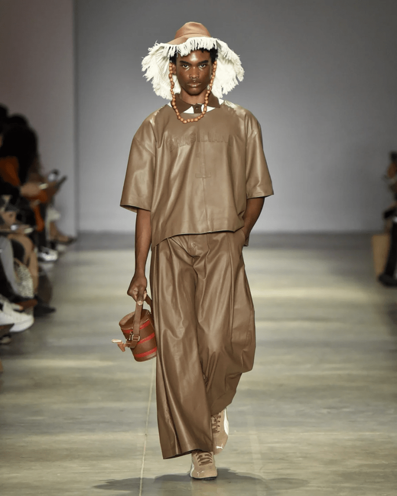 Integralmente, muita presença de couro, palha, jeans, miçangas e sarja, e a paleta de cores foi “caramelizada” e queimada, ou seja, protagonismo de bege, marrom, laranja e ocre – combinando com uma pincelada de azul – (parceria Suvinil), fazendo um jogo de coloração com o tom de pele dos modelos, utilizando cada melanina como parte do look, seja o modelo branco, preto, pardo ou de qualquer etnia. Nos calçados, a parceria com a Puma brilhou.