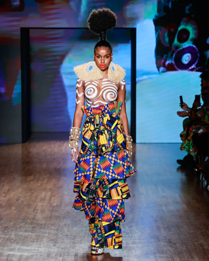 Weider Silveiro e Meninos Rei, por sua vez, transpuseram os tons de seus tecidos para os olhos e bocas das modelos. Silveiro ousou com lábios pretos e as cores de Salvador na coleção de Meninos Rei não ficou apenas nas roupas; bochechas, olhos e lábios foram pintados com laranja, branco e vermelho.