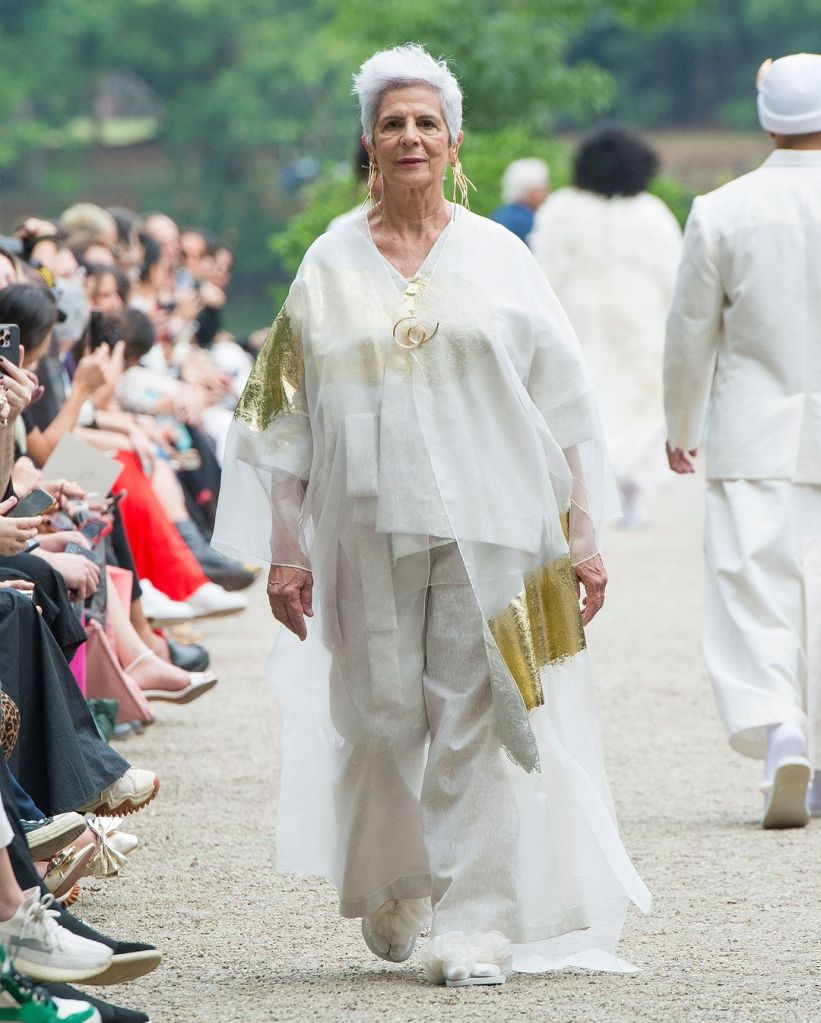 A passarela contou com a presença da atriz Zezé Motta, que desfilou com uma roupa desenhada especialmente para a artista, feita a partir de sacos de café.
