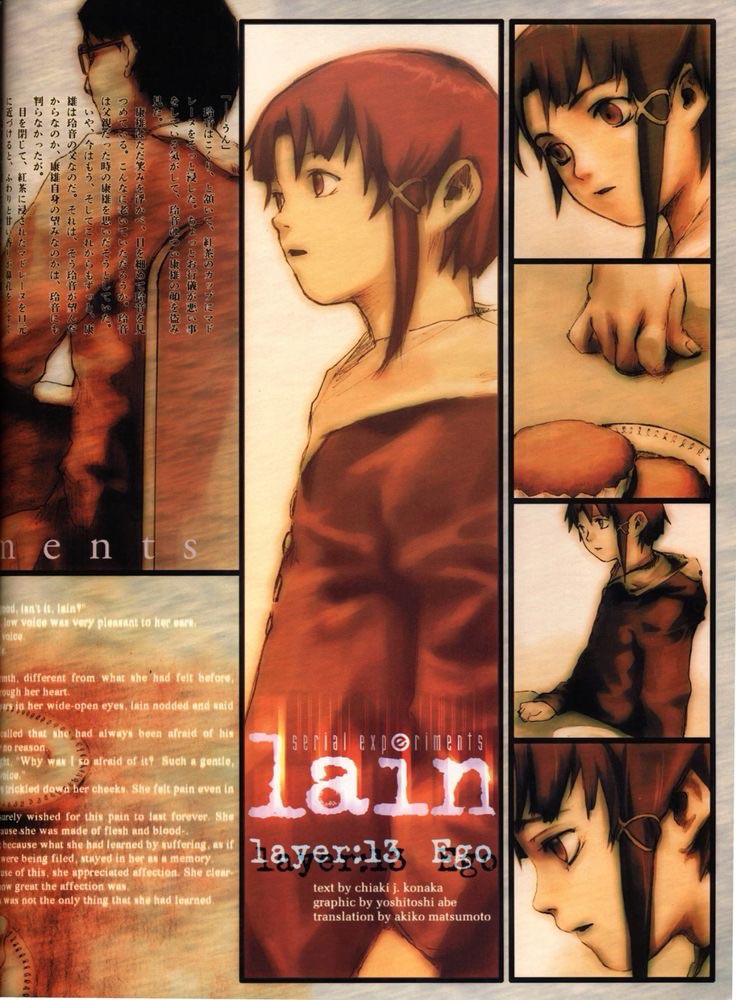 A protagonista Lain, após receber um e-mail de uma garota morta, entra de cabeça na wired, um mundo virtual que o próprio anime descreve como “a soma das redes de comunicação humana, criada a partir dos serviços de telégrafo e telefone, e expandida com a internet e suas redes subsequentes.”