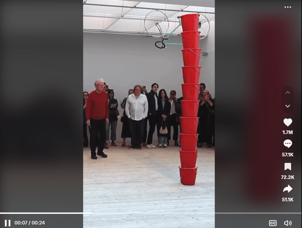 Em 2008, o artista suíço Roman Signer nos apresentou a Sand Column, uma escultura super provocativa, mas que acabou sendo mal interpretada depois de viralizar no TikTok e no Reels. Ninguém que compartilhou disse quem era o autor, onde estava sendo exibido o trabalho… Foi um caos! A única mensagem veiculada era: Isso é arte?