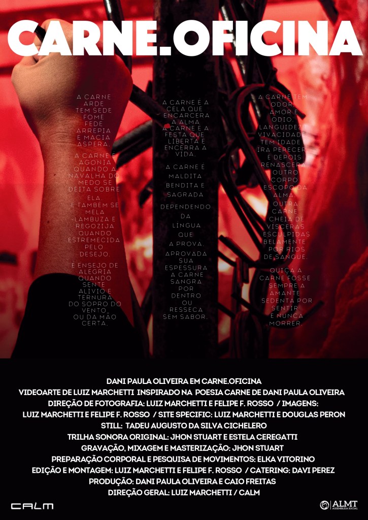 A poesia de Dani Oliveira levanta questões de corpo e morte, alma, gosto, desejo e finitude enquanto a abordagem de Marchetti vasculha o açougue local, do bairro LIXEIRA, onde cresceu, com ganchos, barulho de facas câmara fria e carnes carimbadas.”