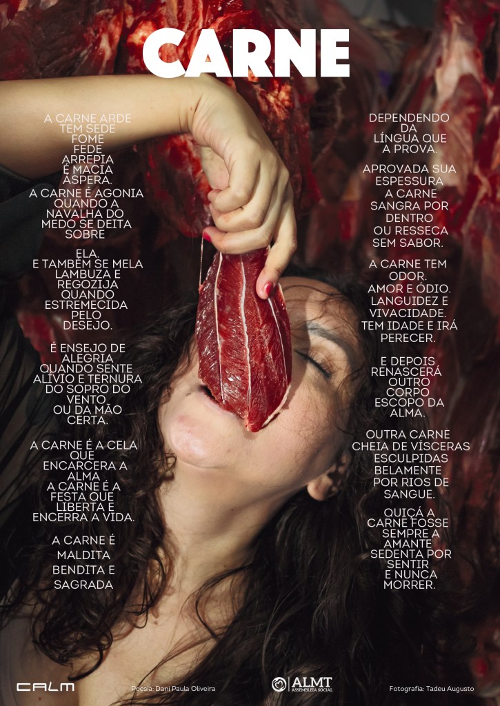 “Do epicentro do agronegócio dois artistas cuiabanos, a poeta Dani Paula e o cineasta Marchetti resolvem questionar a relação Carne e Alma. Entre ventos de inseticida e a matança da bovinocultura brota este recorte em Videoarte de Luiz Marchetti inspirado na poesia ‘Carne’ de Dani Paula Oliveira.