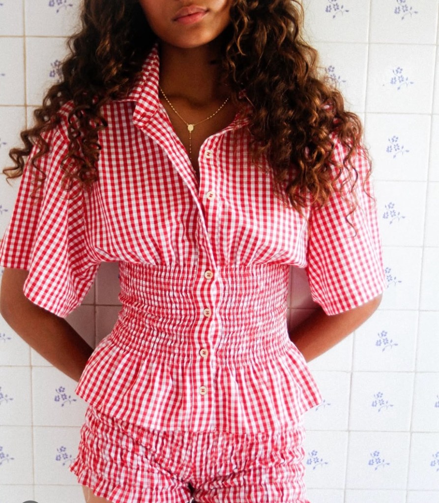 Outra estampa em alta são as listras verticais, em camisas de botão, que ficam ótimas em conjuntos de algodão ou linho. Além dos quadriculados estilo piquenique, nos tons de vermelho e rosa.