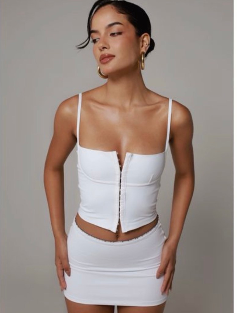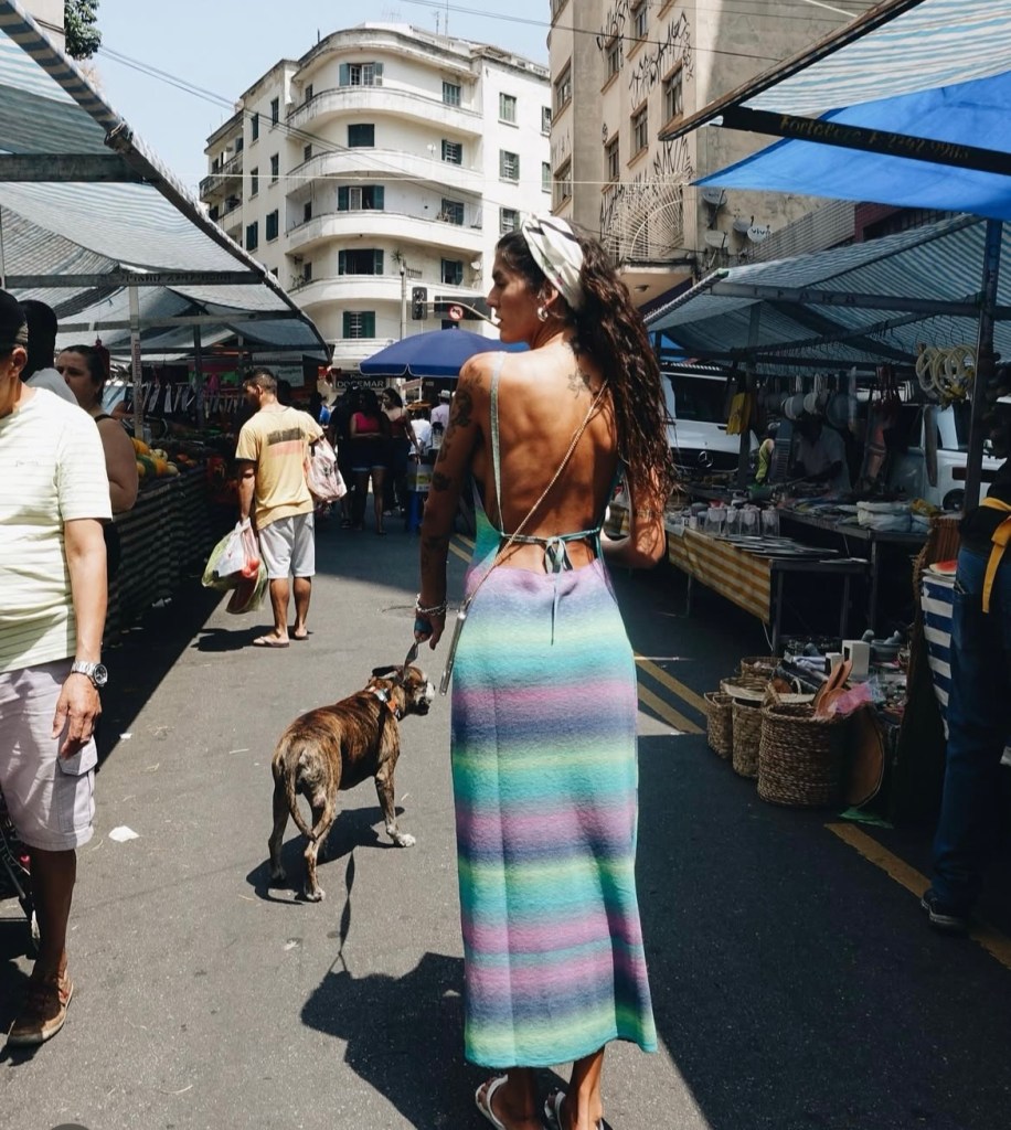 Fazendo o recorte para o clima tropical, a tendência chega no país sem a jaqueta, com batas, regatas e croppeds. Marcas independentes como a @Donagaveta tem opções em poliamida flexível de forro duplo e algodão com elastano. O conjunto Ceci, a saia DG e saia Melí são opções neutras fáceis de combinar.