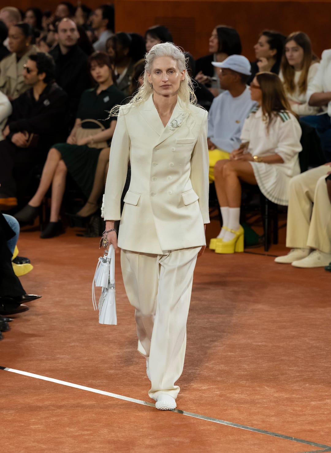 Na Lacoste, o frizz controlado com aspecto molhado deixa o look mais despojado sem perder a seriedade na hora do trabalho.