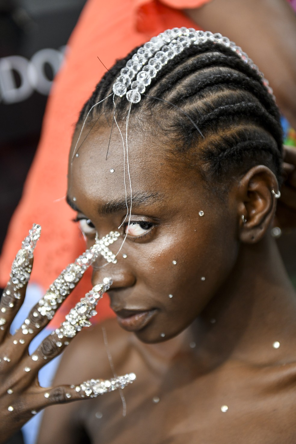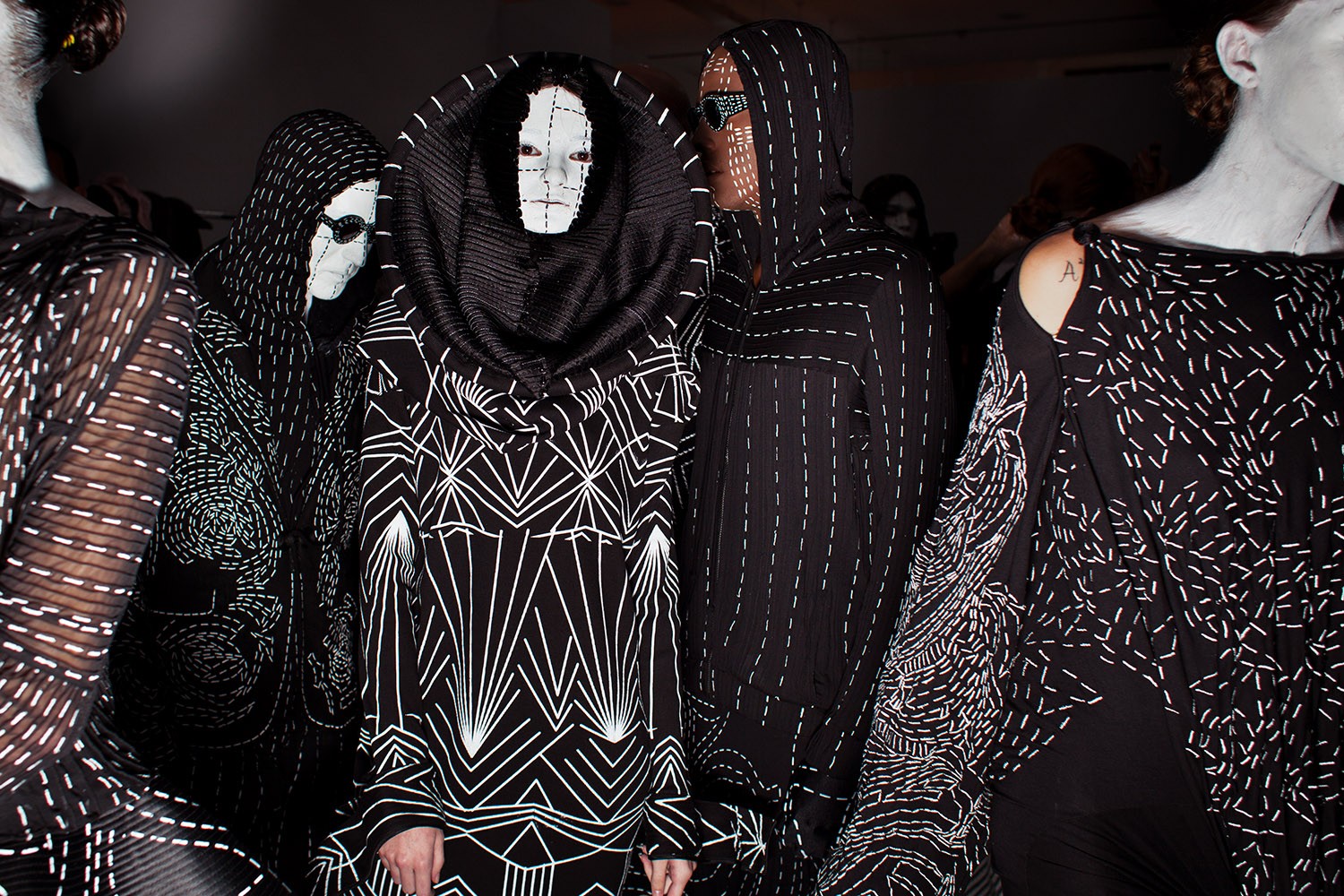 O ano era 2018 e Marcos Costa estendia o pontilhismo dos pontos de costura das peças de Lino Villaventura para o rosto dos modelos criando a sensação de um corpo bordado em preto e branco.
