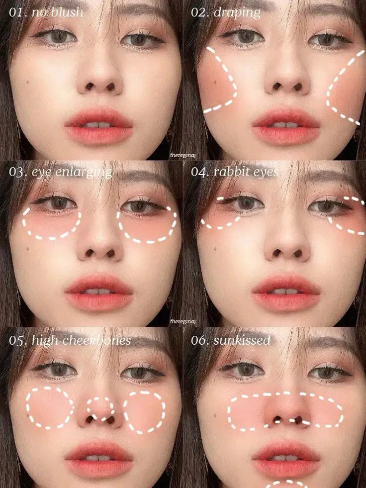 Apesar de não haver uma aplicação fixa para o blush nesse estilo de maquiagem, é comum ver algumas modelos usando o produto bem abaixo dos olhos, ou bem no centro do rosto, saindo um pouco do “costume” ocidental de aplicá-lo nas têmporas. O importante é abusar do blush para dar aquele efeito fofo! Por aqui, somos time blush blindness!