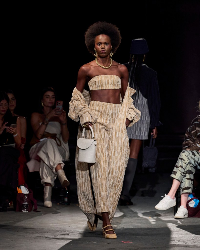 Além das escolhas estéticas, o desfile evidencia um movimento estratégico. As peças já estavam disponíveis para venda no momento da apresentação, sinalizando uma preocupação direta com comercialização.