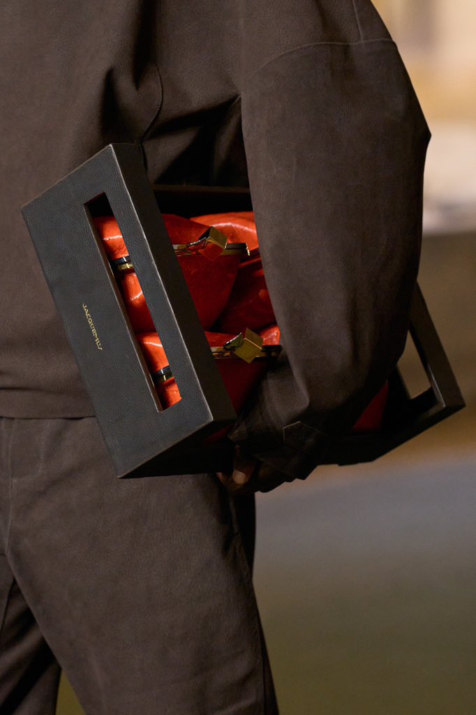 A narrativa é pessoal. É sobre sua bisavó que colhia vegetais em trajes elegantes, sobre a mãe que usava uma saia improvisada pelo filho aos oito anos, sobre álbuns de família repletos de fotos de colheitas e sobre um menino do interior que agora veste celebridades. Mas também é estratégica. Jacquemus aprimora sua narrativa visual com técnicas de alta-costura, matérias-primas nobres e composições cada vez mais complexas.