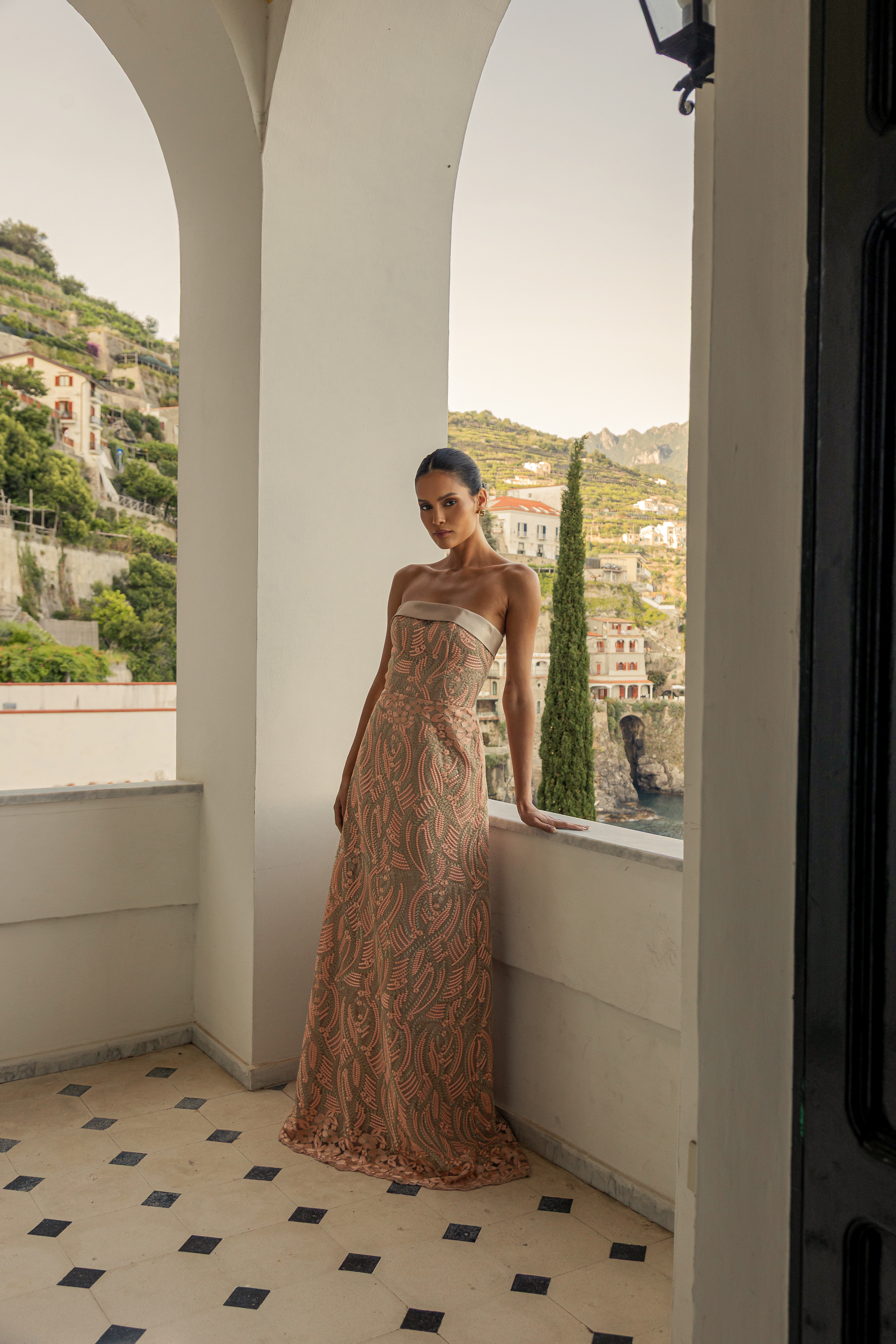 “Tons suaves se mesclam com as paisagens litorâneas e celebram a natureza com força e poesia. As tonalidades refletem as diferentes formas de feminilidade, das delicadas até as mais intensas e profundas. Nas modelagens, trouxemos opções para diversos estilos e moods de cerimônia, respeitando sempre a nossa sofisticação característica”