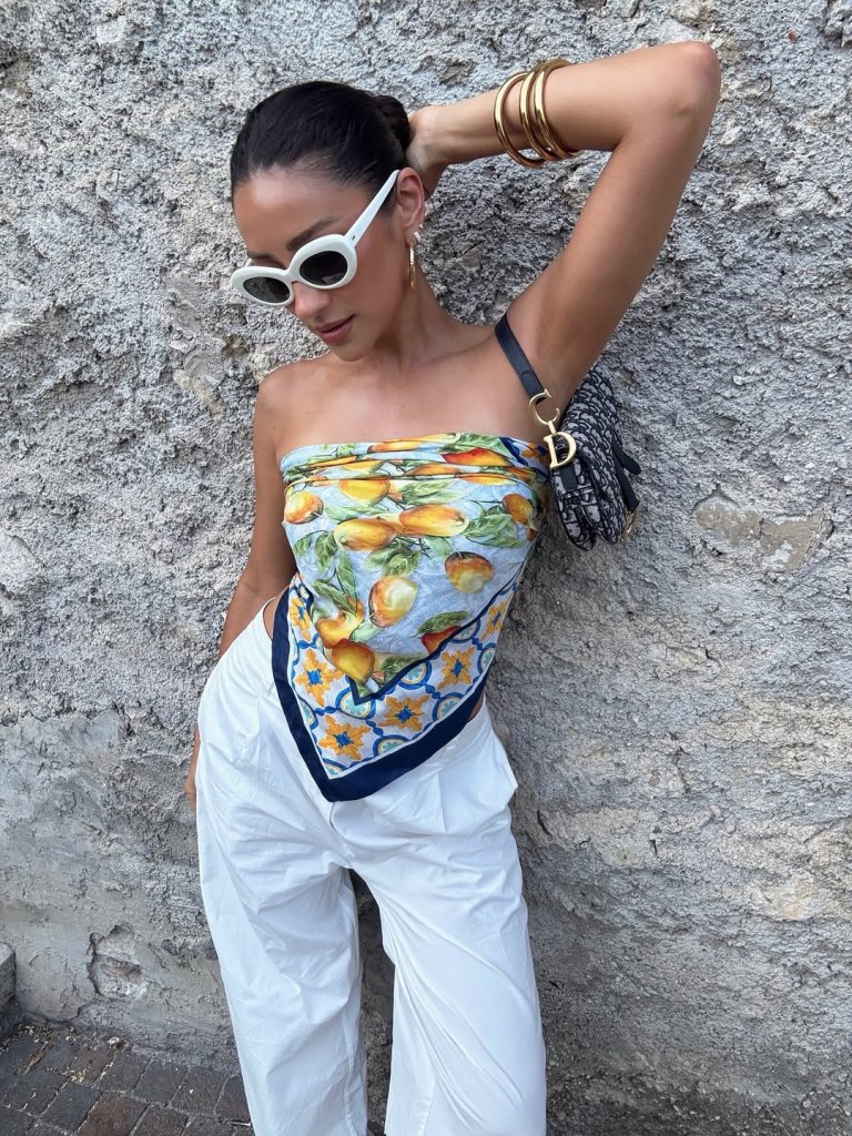 Os lenços seguem em alta e, no verão, continuam fazendo sucesso — seja na cabeça, na bolsa, no pescoço ou na cintura, trazendo charme para os looks.