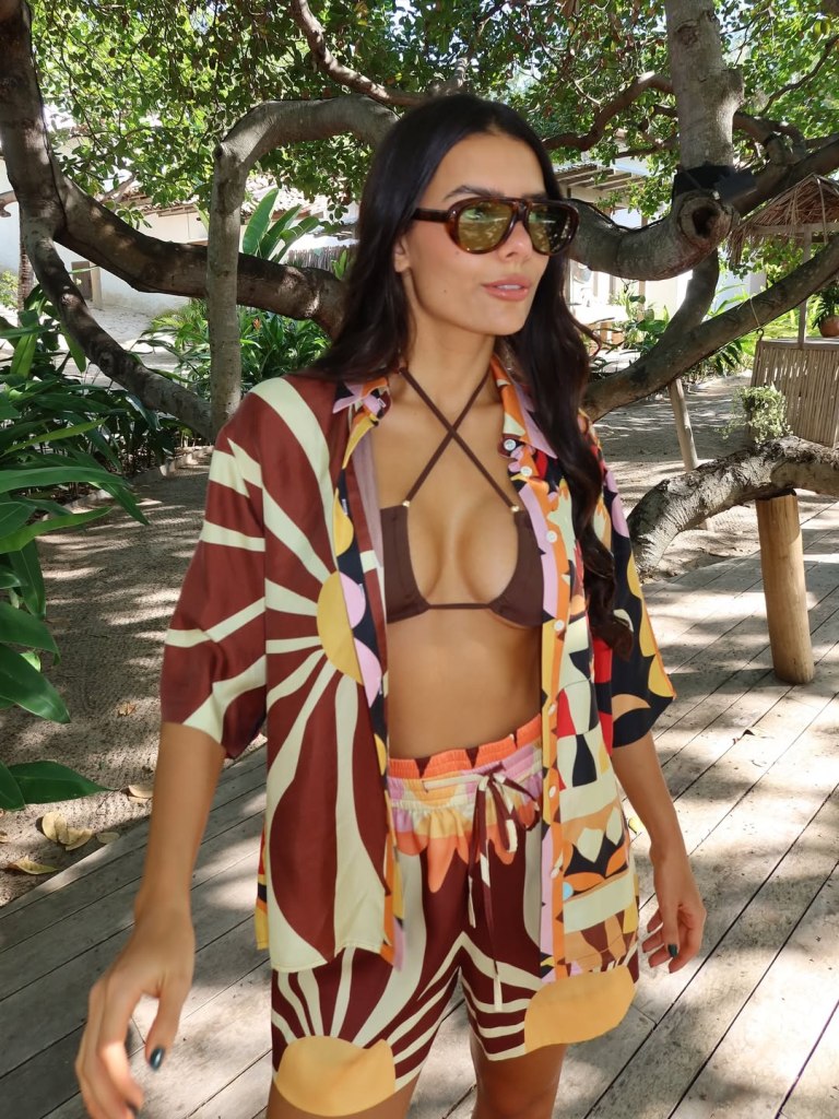 Clássica e ousada, a estampa de oncinha retorna em vestidos, saias, blusas, biquínis e acessórios. No verão, ela aparece combinada a peças leves, criando produções versáteis para diferentes ocasiões.