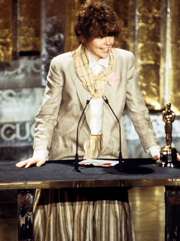 3. Diane Keaton no Oscar, 1978; quando levou o prêmio de melhor atriz, Diane usou um conjunto de alfaiataria Armani com uma saia por cima, que escandalizou as pessoas da época por ser considerado “masculino demais”.