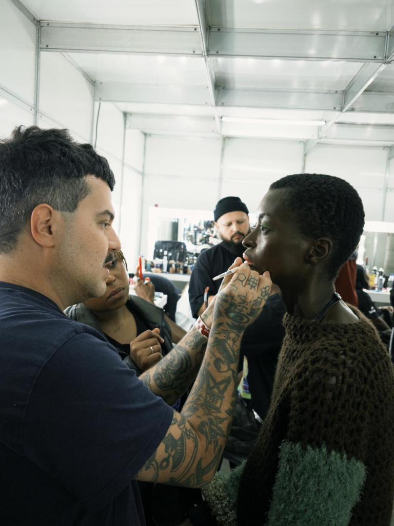 A beleza ficou por conta de Helder Rodrigues, beauty artist e criador da Herô. A inspiração veio dos giz de cera e dos tons pastéis: os olhos ganharam cores secas, misturadas até alcançar tons inéditos, muitos, inclusive, nem existem no mercado. Nos lábios, tons candy colors porém pálidos, com acabamento que remete à textura do giz de cera, completando a estética vibrante e experimental da passarela.