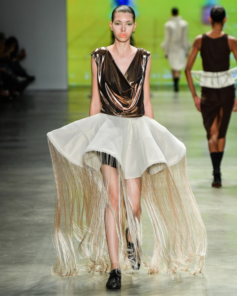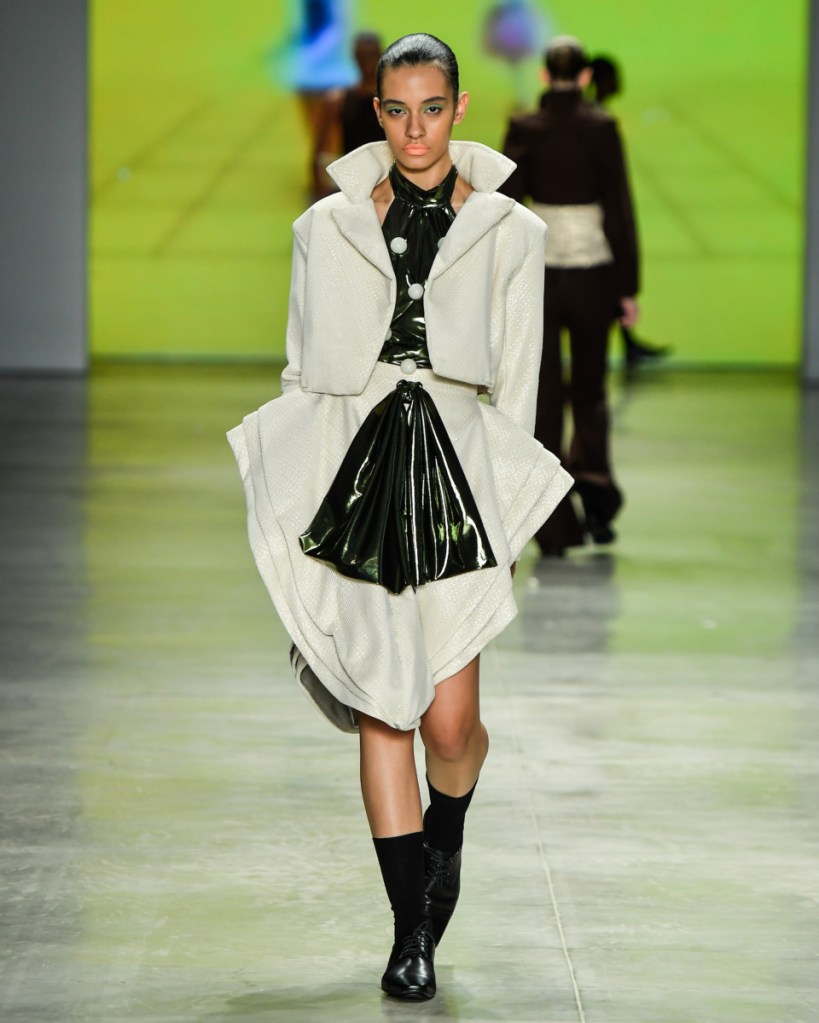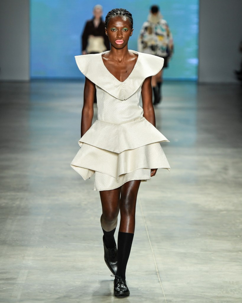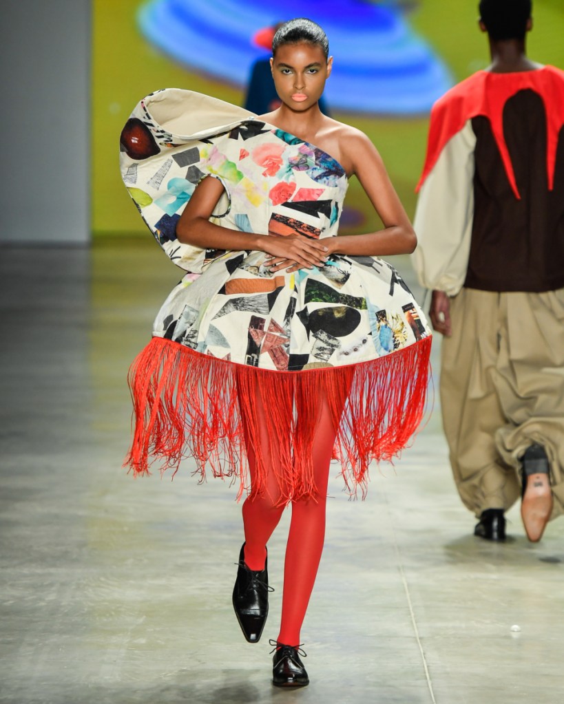 Franjas e ombros largos marcaram presença, assim como o uso de estofados e materiais nada convencionais, como ilhoses e organza. O maximalismo foi a estrela da vez — já passou da hora de darmos adeus ao minimalismo, amém? —, tudo em um jogo ousado de formas geométricas e cortes inesperados.